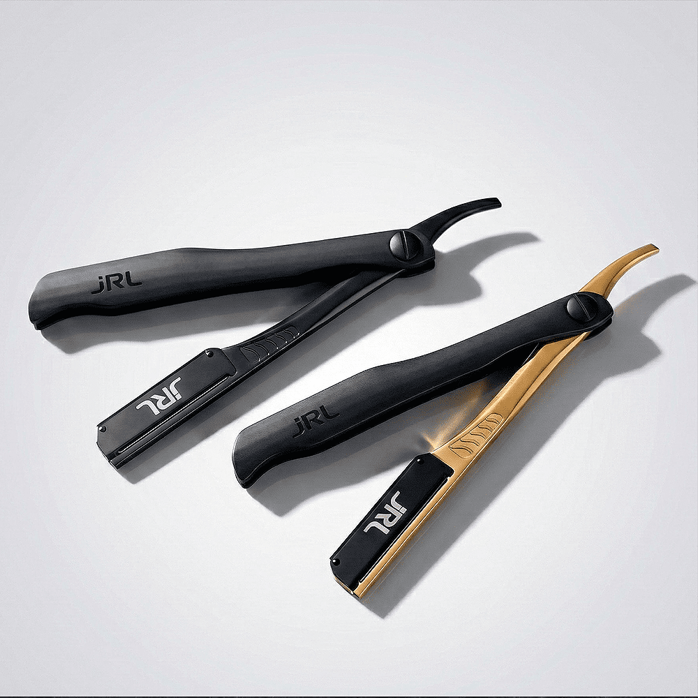 A navalha profissional JRL foi concebida para barbeiros que procuram a máxima precisão, controlo e velocidade em cada serviço. O seu sistema magnético patenteado exclusivo mantém a lâmina firmemente no lugar, evitando deslizamentos e garantindo linhas precisas em cada corte e acabamento. Graças ao seu inovador mecanismo magnético, a troca de lâminas é rápida, fácil e segura, permitindo manter um fluxo de trabalho eficiente sem sacrificar o controlo ou a precisão. Ideal para contornos, detalhes e acabamentos profissionais de alto nível. Fabricada com materiais de primeira qualidade, combina um cabo de aço inoxidável com uma haste de fibra de carbono durável e leve, oferecendo o equilíbrio perfeito para longos dias na barbearia. Principais Características ✔ Sistema magnético patenteado para máxima segurança e estabilidade ✔ Precisão profissional para linhas limpas e definidas ✔ Troca de lâminas rápida e fácil ✔ Materiais de alta qualidade: aço inoxidável e fibra de carbono ✔ Design leve e ergonómico para uso profissional contínuo ✔ Disponível em preto ou preto e dourado